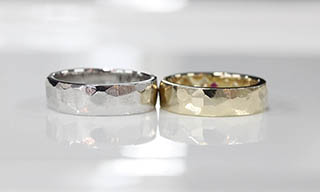 表面をいろいろな角度からヤスリを掛けて、男性がホワイトゴールド、女性がイエローゴールドに!
