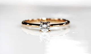 ゴールドの中には、ピンクゴールドと言われる可愛らしい色合いの金があります。ダイヤモンドを留める爪を4本にして、シンプルなエンゲージリングにしました。